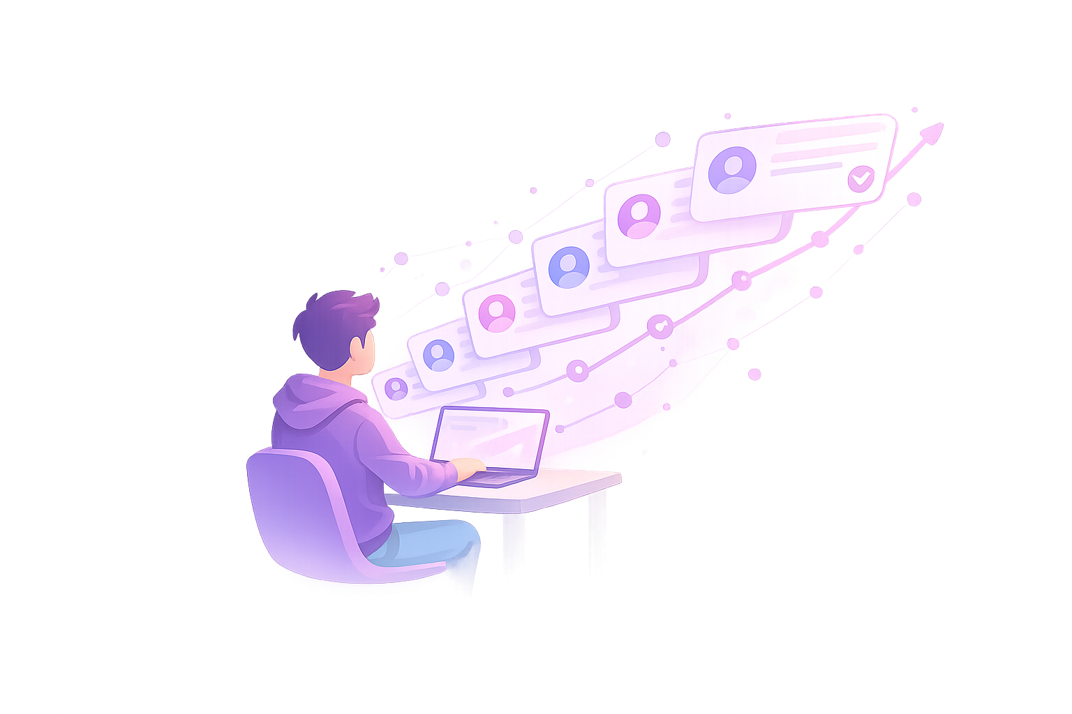 Access verified profiles on LinkedIn, Facebook, X, Upwork, and Instagram — all from one dashboard. No more juggling multiple accounts or worrying about authenticity.